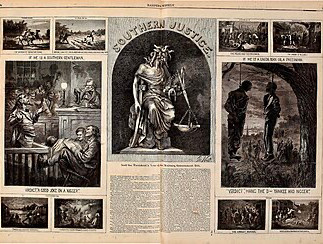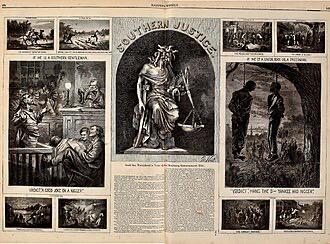 One powerful example from this era is Southern Justice, a nationally circulated cartoon responding to violence in South Carolina during Reconstruction.